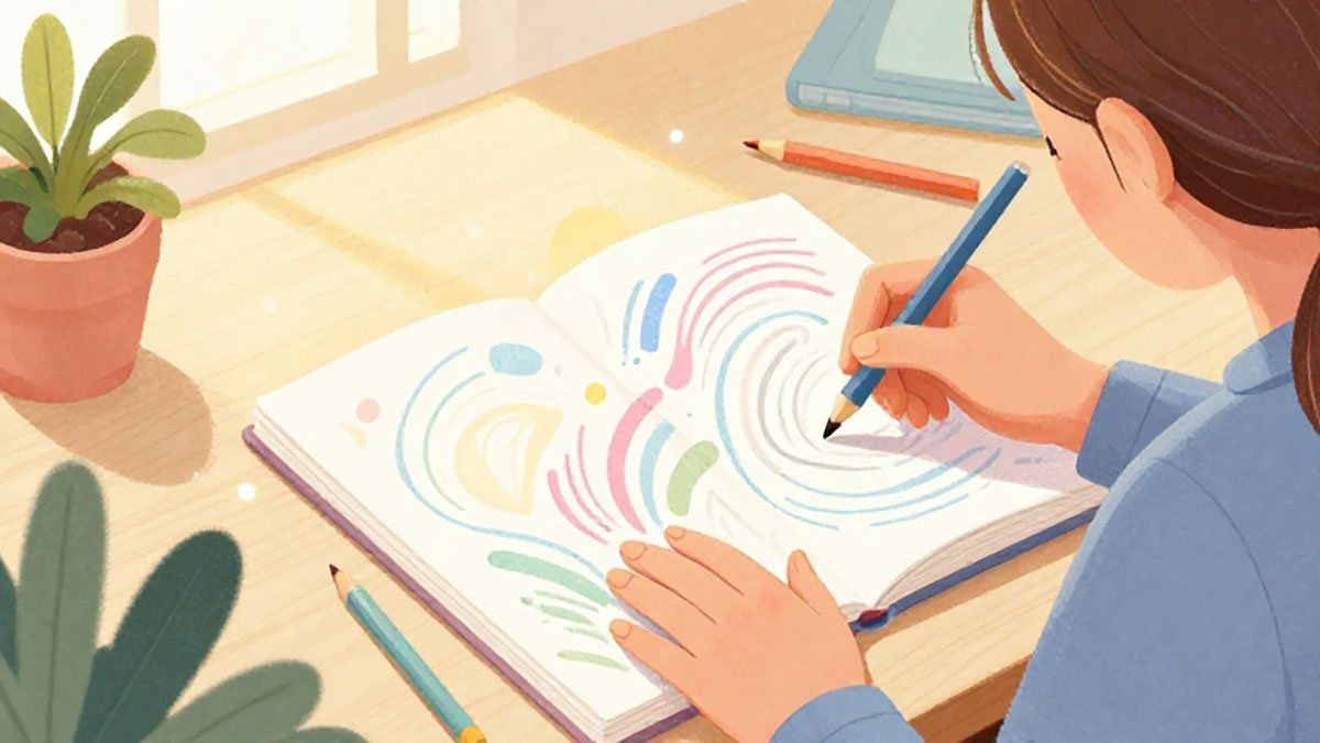 • Stimulasi Kreativitas Tanpa Tekanan: Anda tidak perlu menjadi seniman profesional. Cukup mencoret-coret selama 10–15 menit sudah cukup untuk memicu hormon dopamin yang memperbaiki suasana hati.